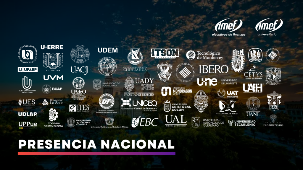 El Instituto Mexicano de Ejecutivos de Finanzas en su capítulo Universitario es una organización estudiantil dependiente del IMEF A.C. Tiene presencia nacional y reúne a los jóvenes universitarios más destacados, interesados y comprometidos con el entorno económico, financiero y empresarial.
